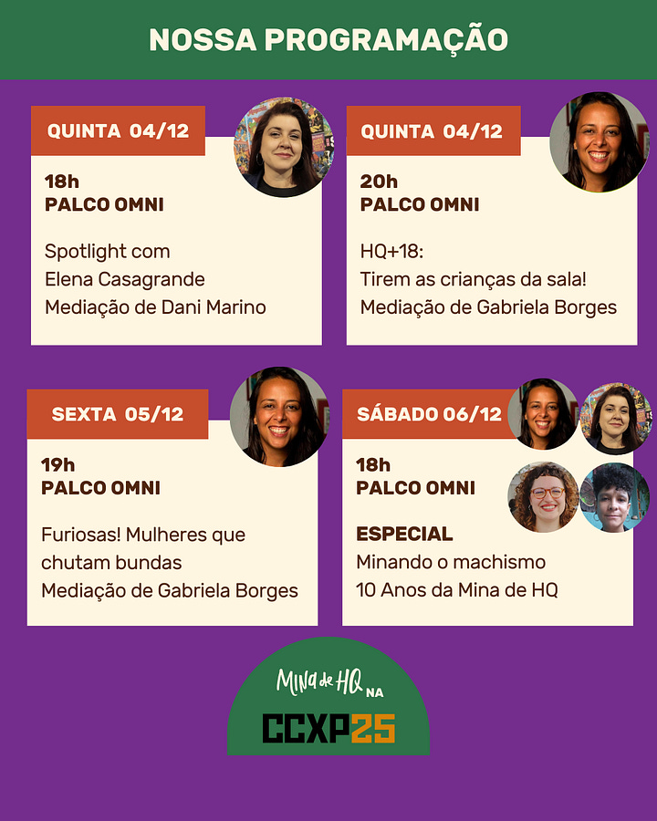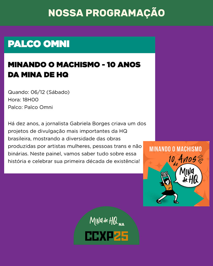 No sábado, vai rolar um painel exclusivo na programação para a celebrar os 10 anos da MHQ, comigo, Dani e a quadrinista Helô D'Angelo - a mediação será de Dandara Palankof.